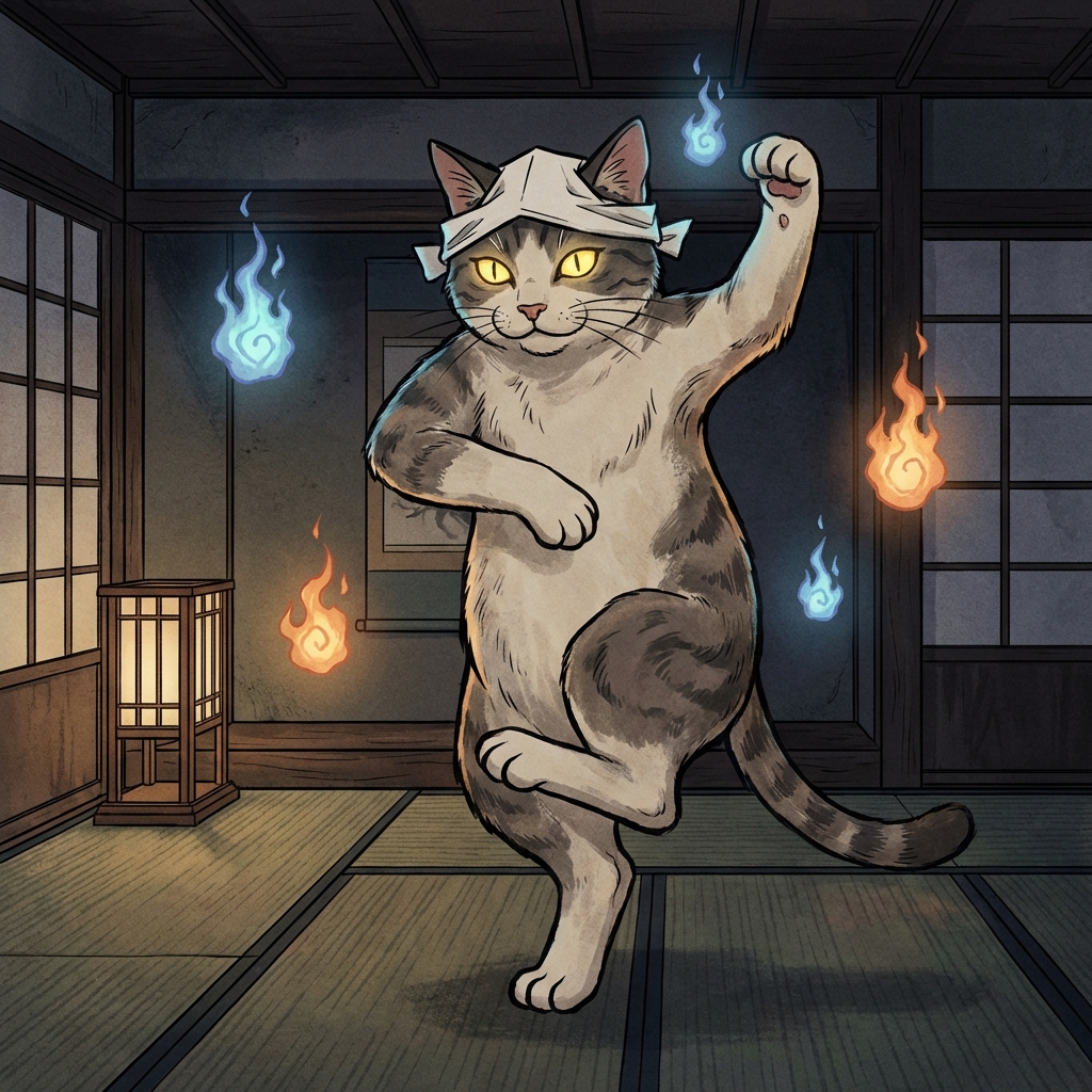 The legend grew during the Edo period as the domestic cat population increased. Cats were mysterious to people: they moved silently, their eyes glowed in the dark, and they were often seen licking lamp oil (which was actually made from fish fat). Folk belief held that if a cat lived long enough (over 13 years), grew large enough, or possessed an exceptionally long tail, it would gain supernatural powers and transform into a Bakeneko.
