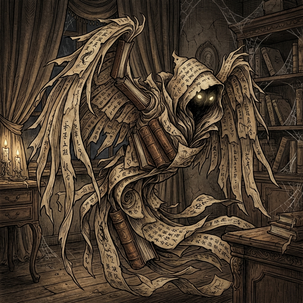 Its primary characteristic is its Academic Pride. It is not a violent spirit in the traditional sense, but it is extremely defensive of its contents. It vibrates and “shivers” when humans are nearby, making a sound like rustling parchment. If a person tries to touch it with dirty hands or without proper respect, the Kyōrinrin will attack with Paper Cuts that are said to never heal. It can also breathe a strange “literary smoke” that causes the victim to forget everything they have ever learned.