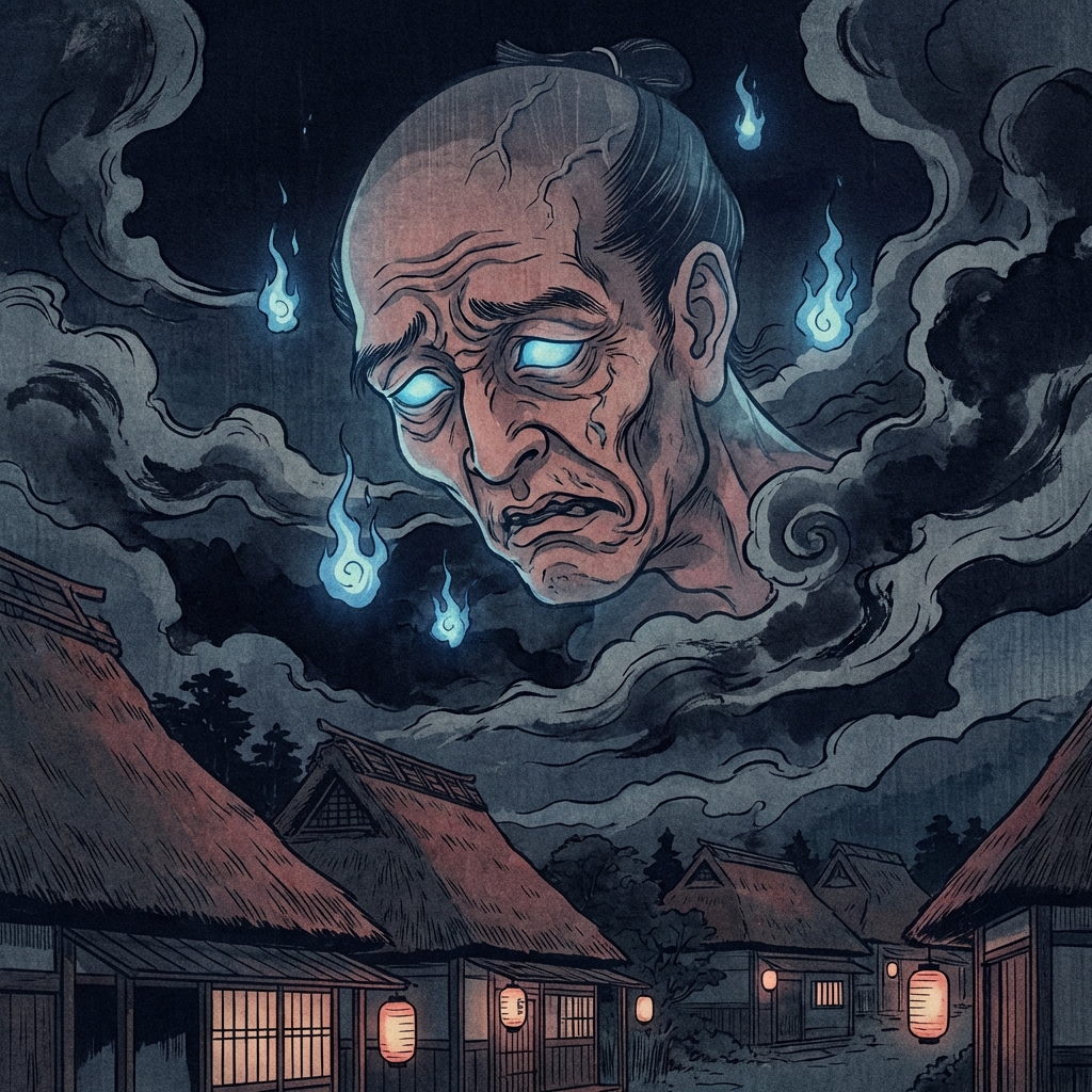 Ōkubi (大首), the “Great Head,” is a terrifying and colossal apparition—a severed, floating head the size of a house that appears at dawn or dusk to signal a great change or a looming disaster.