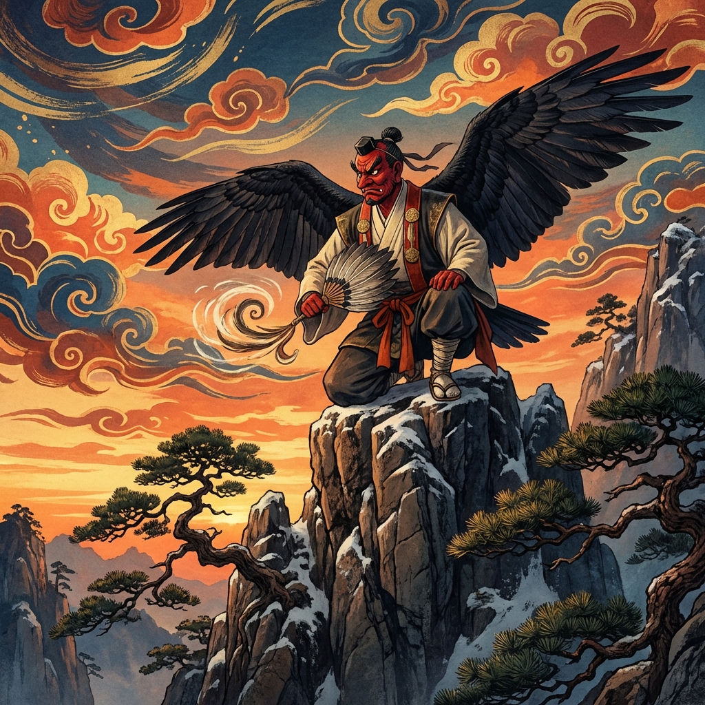 Tengu (天狗), the “Heavenly Dogs,” are the powerful bird-like protectors of Japan’s mountain peaks—master swordsmen and spiritual guardians who exist between the worlds of men, gods, and demons.