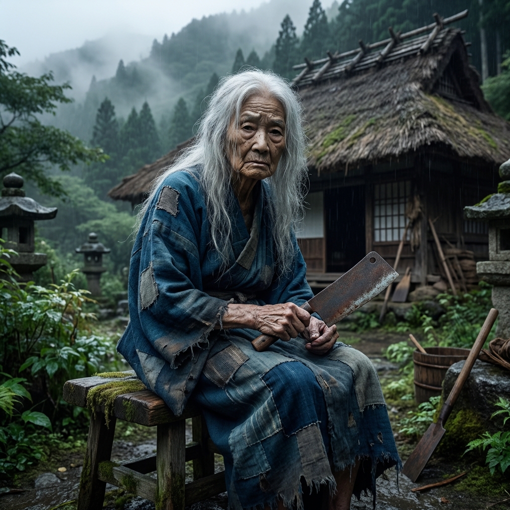 Her origin is a tragic reflection of Japan’s history, often linked to the custom of ubasute (abandoning the elderly). During times of extreme famine, the elderly were sometimes left in the mountains to die; it was believed these abandoned women, filled with rage and a refusal to perish, transformed into Yamauba. Over time, she evolved from a simple “ghost in the woods” into a primordial mountain witch, representing the terrifying and life-giving power of untamed nature.